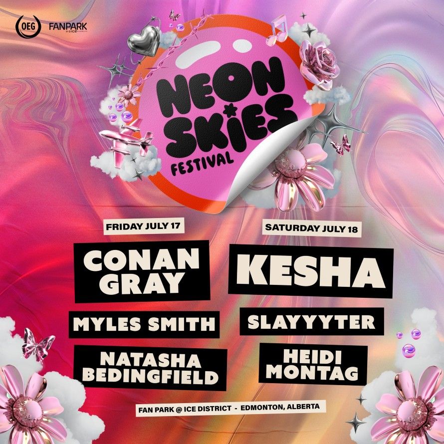 🎉 Welcome to Neon Skies Festival: Conan Gray Myles Smith & Natasha Bedingfield, where the impossible becomes possible and dreams take flight! 🏛️ Join us at Fan Park at Ice District in the heart of Edmonton, AB for an event that will redefine your expectations. 📅 On July 16th, 2026 at 05:00 PM, witness the transformation of space and time into something truly magical. ✨ It's a curated experience combining the best of innovation, entertainment, and community spirit, creating moments that will be remembered for years to come. Whether you're a first-time visitor or a seasoned enthusiast, prepare to be amazed. 🎊 Book now to ensure your place in this unforgettable experience!http://maps.seatics.com/GeneralAdmissionEvent_2021-07-08_1018_05152023_093419_SVGC_tn.png