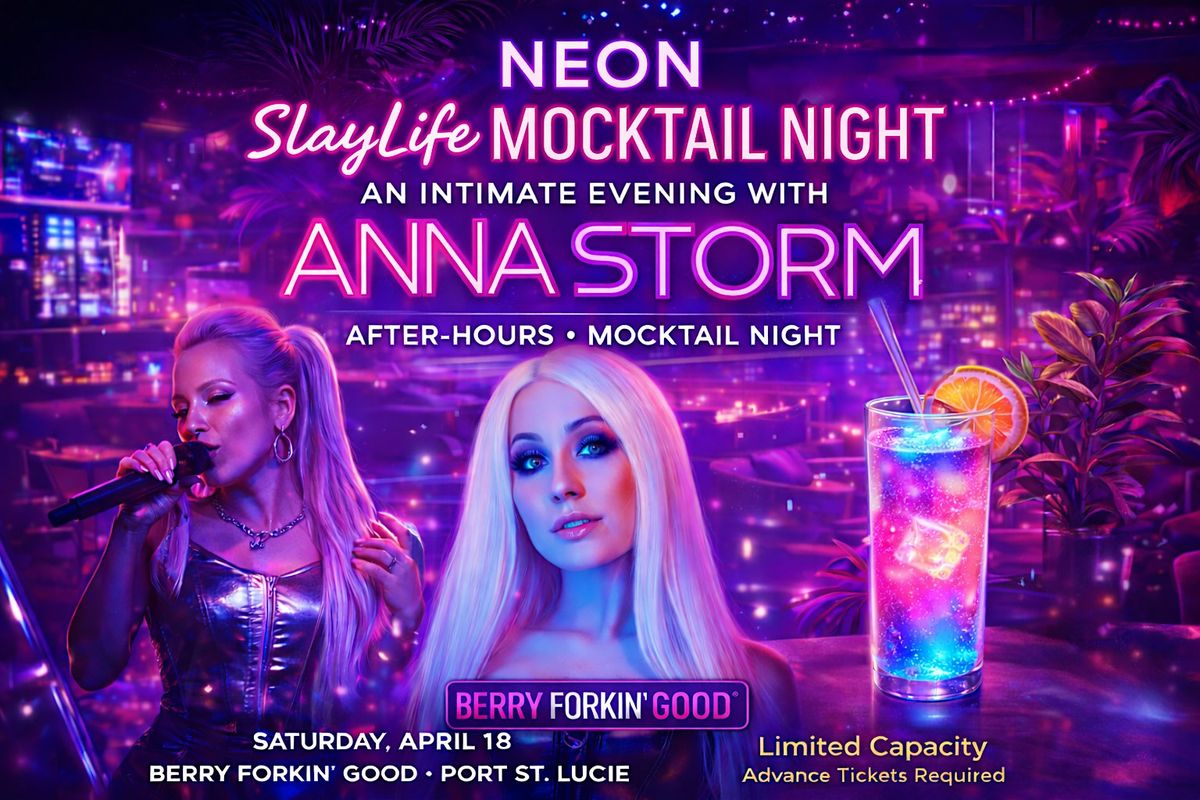 We’re shutting down the blenders, dimming the lights, and turning our café into a cozy neon lounge for a live, intimate mini performance by pop/R&B artist Anna Storm.