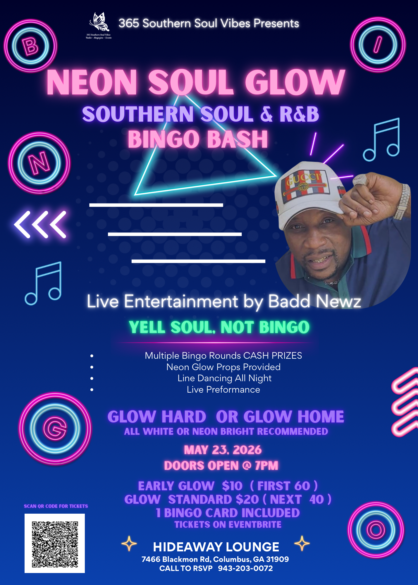 Indulge your senses, ignite your spirit, and join us for a night of boundless energy and iridescent dreams. Let the Neon Soul Glow Bash be your haven of light in the midst of the night.