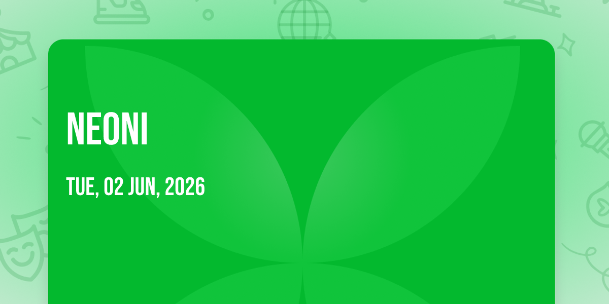 🎉 Welcome to Neoni, where the impossible becomes possible and dreams take flight! 🏛️ Join us at Lincoln Hall in the heart of Chicago, IL for an event that will redefine your expectations. 📅 On June 2nd, 2026 at 06:00 PM, witness the transformation of space and time into something truly magical. ✨ It's a curated experience combining the best of innovation, entertainment, and community spirit, creating moments that will be remembered for years to come. Whether you're a first-time visitor or a seasoned enthusiast, prepare to be amazed. 🎊 Book now to ensure your place in this unforgettable experience!http://maps.seatics.com/GeneralAdmissionEvent_2019-01-14_1230_SVGC_tn.gif