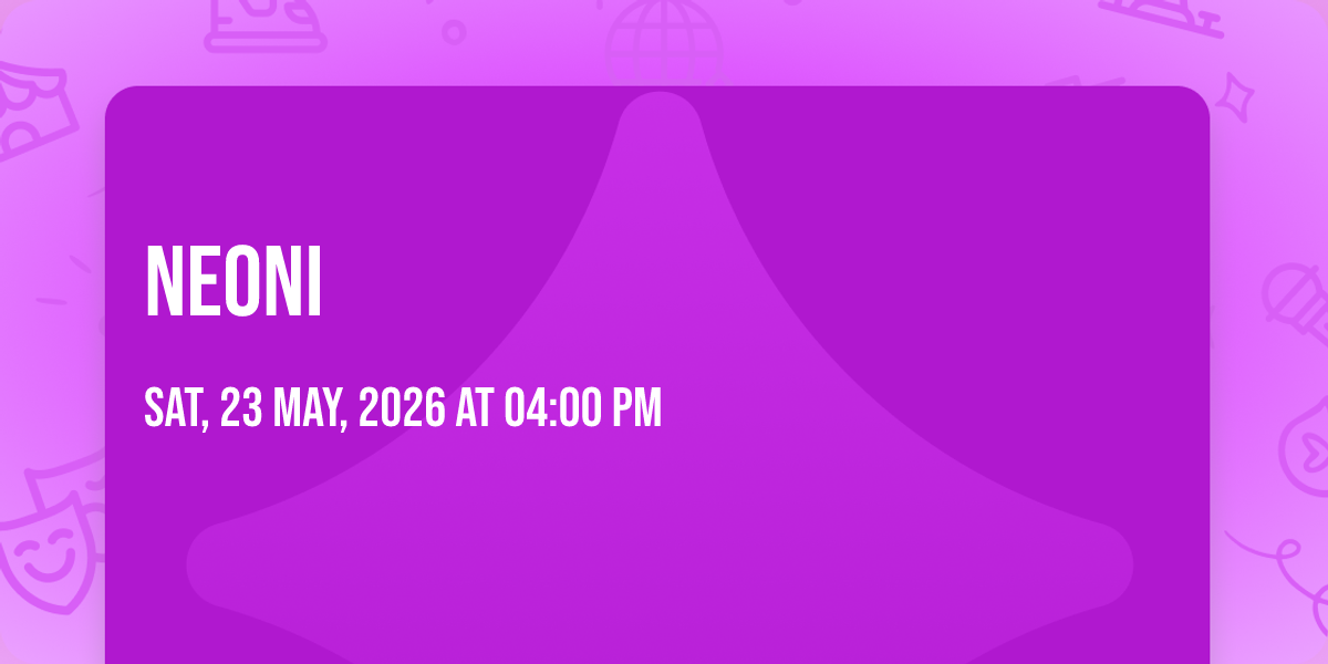 🌟 Step into a world of wonder at Neoni, where extraordinary moments await! 🏛️ Located at The Crocodile in dynamic Seattle, WA, this event will become the talk of the town. 📅 Join us on May 23rd, 2026 at 04:00 PM for a celebration that defies the ordinary. ✨ This curated experience brings together the best of entertainment, culture, and community spirit. Every detail has been thoughtfully planned to ensure an unforgettable experience for all our guests. 🎯 Take advantage of this opportunity to be part of something special. 🎊 Early registration is recommended as space is limited!http://maps.seatics.com/TheCrocodile_GAVIP_2023-03-15_2023-03-15_1120_03152023_112521_SVGC_tn.png