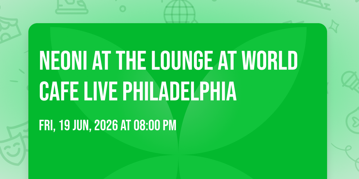 🌟 Step into a world of wonder at Neoni at The Lounge at World Cafe Live Philadelphia, where extraordinary moments await! 🏛️ Located at The Lounge at World Cafe Live Philadelphia in dynamic Philadelphia, PA, this event will become the talk of the town. 📅 Join us on June 19th, 2026 at 08:00 PM for a celebration that defies the ordinary. ✨ This curated experience brings together the best of entertainment, culture, and community spirit. Every detail has been thoughtfully planned to ensure an unforgettable experience for all our guests. 🎯 Take advantage of this opportunity to be part of something special. 🎊 Early registration is recommended as space is limited!