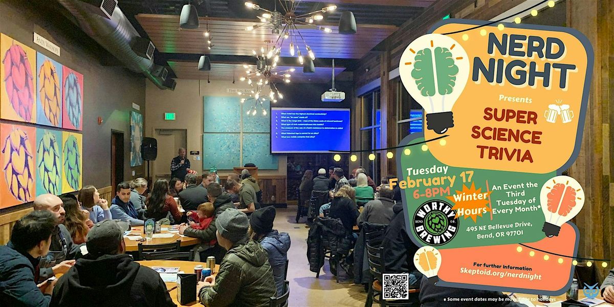 Grab your friends, learn something new, and compete for the title of ultimate Nerd Night science trivia champion. Expect an evening filled with mind-boggling questions, laughter, and plenty of local brews to add to the fun. Winners get their choice of cool Skeptoid prizes!