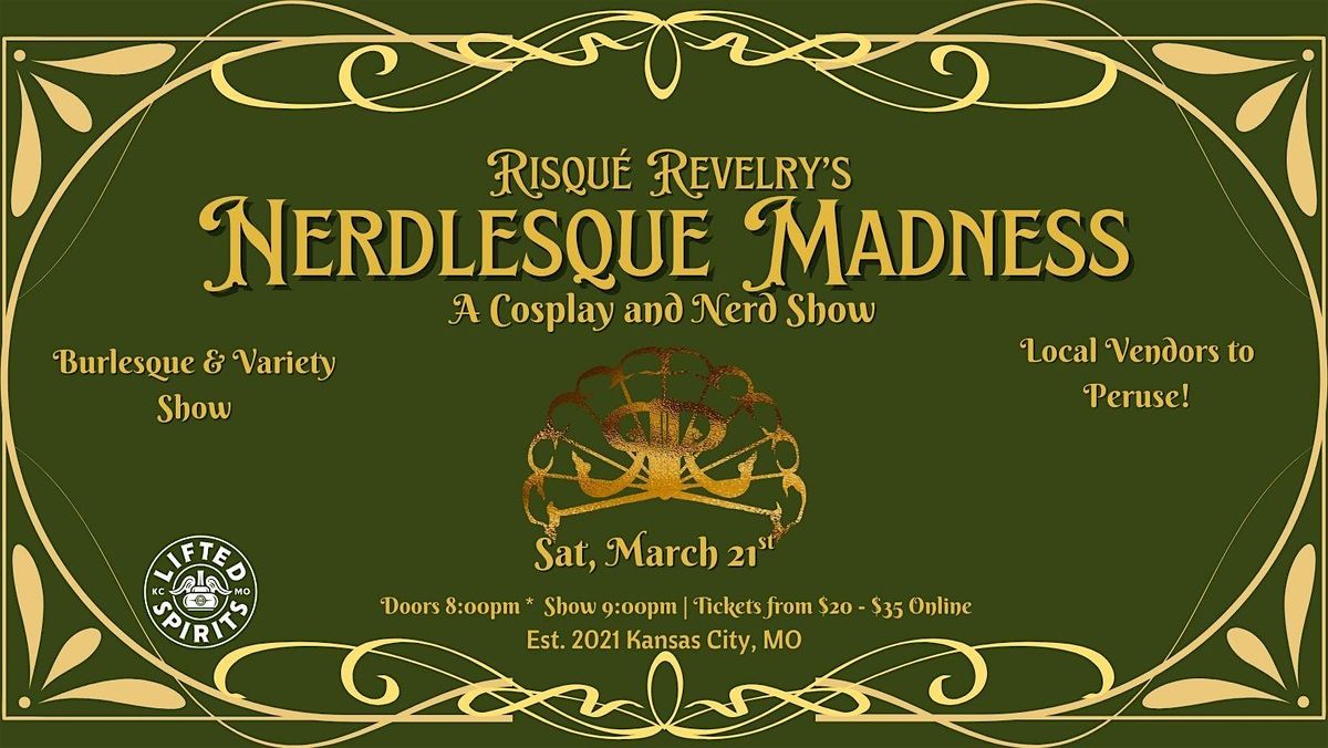 Come revel with us for our annual Nerdlesque Madness show where you get to see the nerdiest, dirtiest, and flirtiest acts for the convention season in Kansas City. Will you see your favorite anime character on stage? Will you get a little history lesson? The possibilities are as endless as the galaxy!