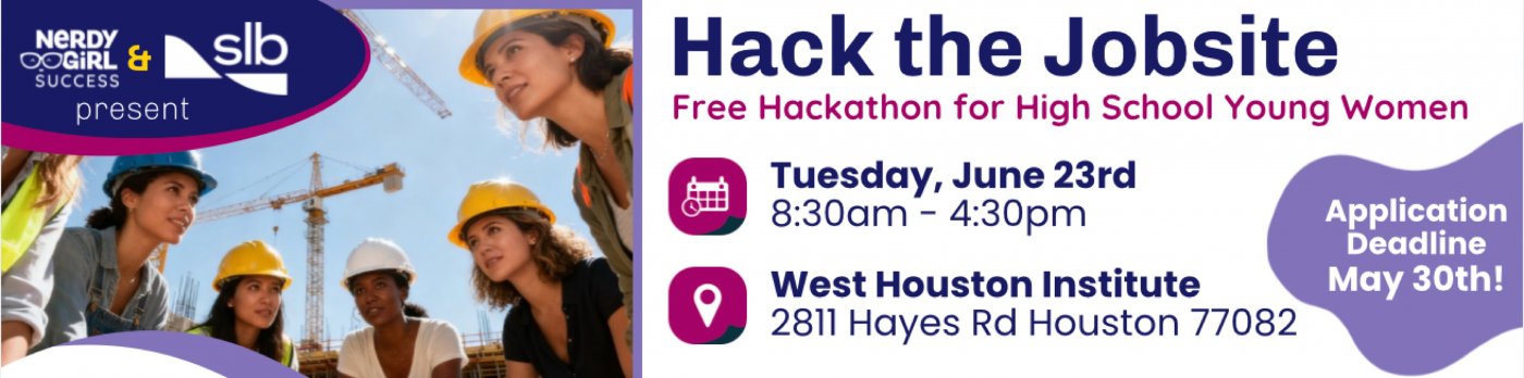 On Tuesday, June 23rd, we will be hosting Hack the Jobsite, a one-day leadership and career exploration hack-a-thon designed specifically for high school young women (Grades 9–12) from across the Houston area.