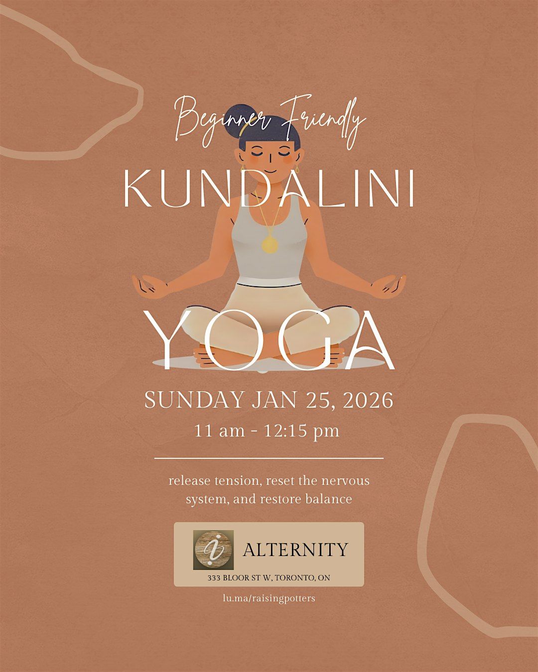 This class is designed for people who are doing a lot in the world and feel it in their nervous system. You do not need prior experience with kundalini yoga.