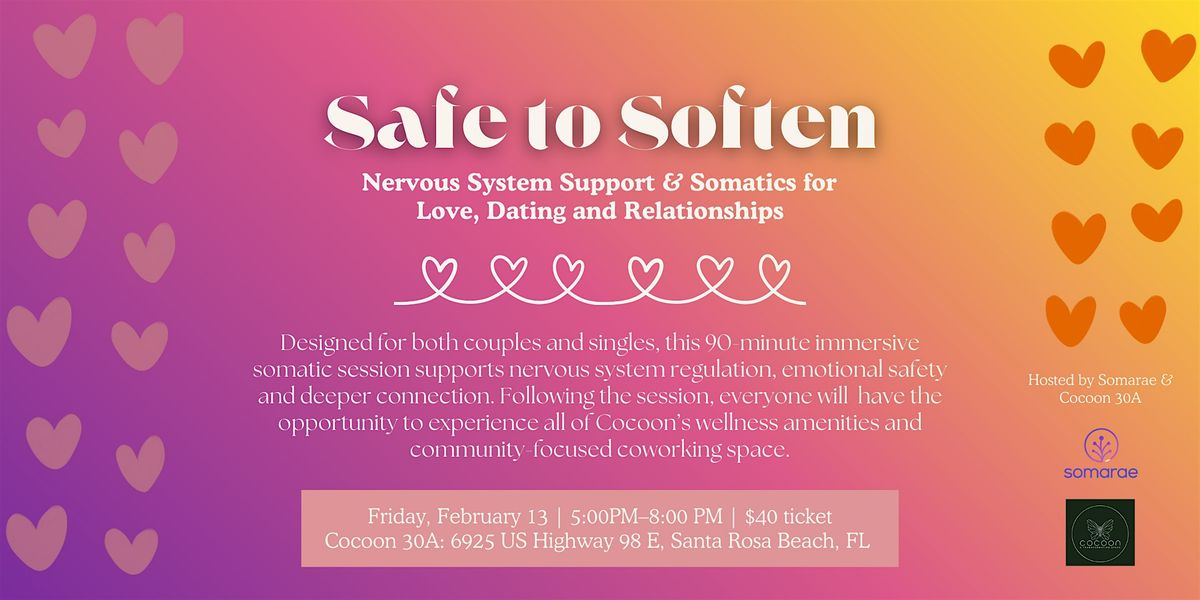 Safe to Soften is an immersive experience created for both couples and singles who want to feel more grounded, present, and connected—in their bodies and in their relationships. This is not about fixing yourself or your partner. It’s about creating safety in the nervous system so connection, intimacy, and understanding can emerge naturally.