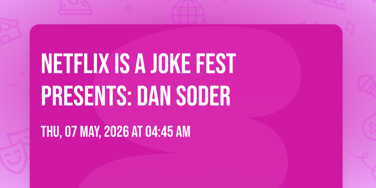 📍 Location: 34.1027, -118.327✨ Discover the extraordinary at Netflix Is A Joke Fest Presents: Dan Soder, where magic meets reality in ways you've never imagined! 🏛️ Set in Avalon Hollywood nestled in bustling Los Angeles, CA, this event promises to be a landmark occasion. 📅 Taking place on May 7th, 2026 at 04:45 AM, it's going to create an atmosphere where every moment becomes a cherished memory. 🌟 Immerse yourself in an experience crafted with attention to every detail, designed to surprise and delight at every turn. They have worked tirelessly to ensure this event exceeds all expectations, bringing together elements of entertainment, innovation, and pure joy. 🎊 Don't miss your chance to be part of this remarkable journey!