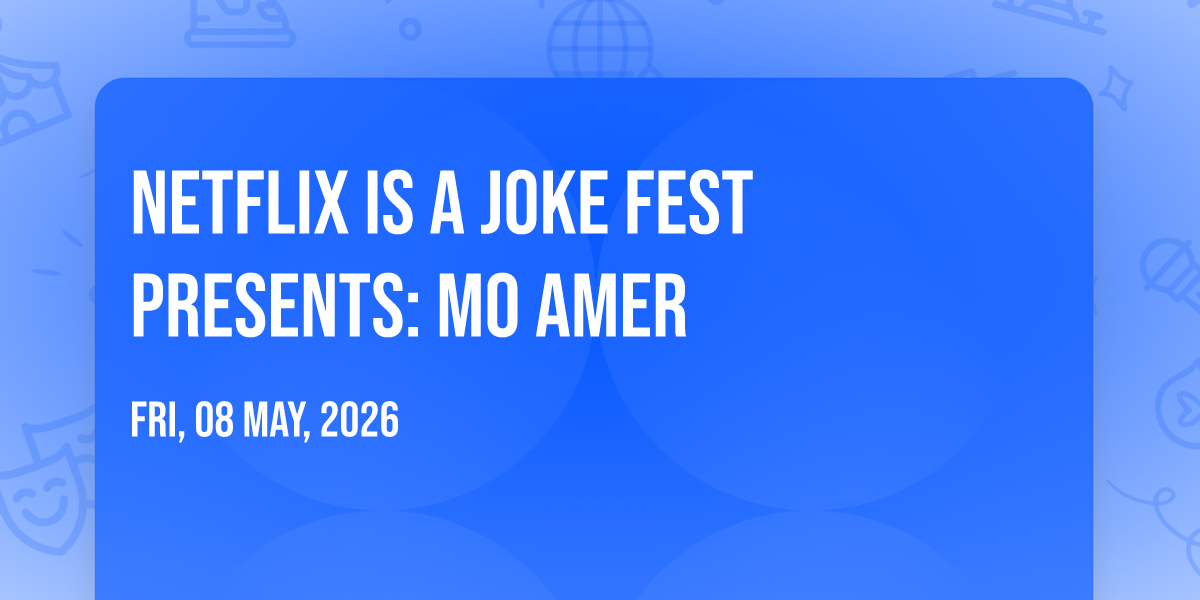 📍 Location: 34.0426, -118.256🎉 Welcome to Netflix Is A Joke Fest Presents: Mo Amer, where the impossible becomes possible and dreams take flight! 🏛️ Join us at Orpheum Theatre - Los Angeles in the heart of Los Angeles, CA for an event that will redefine your expectations. 📅 On May 8th, 2026 at 02:00 AM, witness the transformation of space and time into something truly magical. ✨ It's a curated experience combining the best of innovation, entertainment, and community spirit, creating moments that will be remembered for years to come. Whether you're a first-time visitor or a seasoned enthusiast, prepare to be amazed. 🎊 Book now to ensure your place in this unforgettable experience!