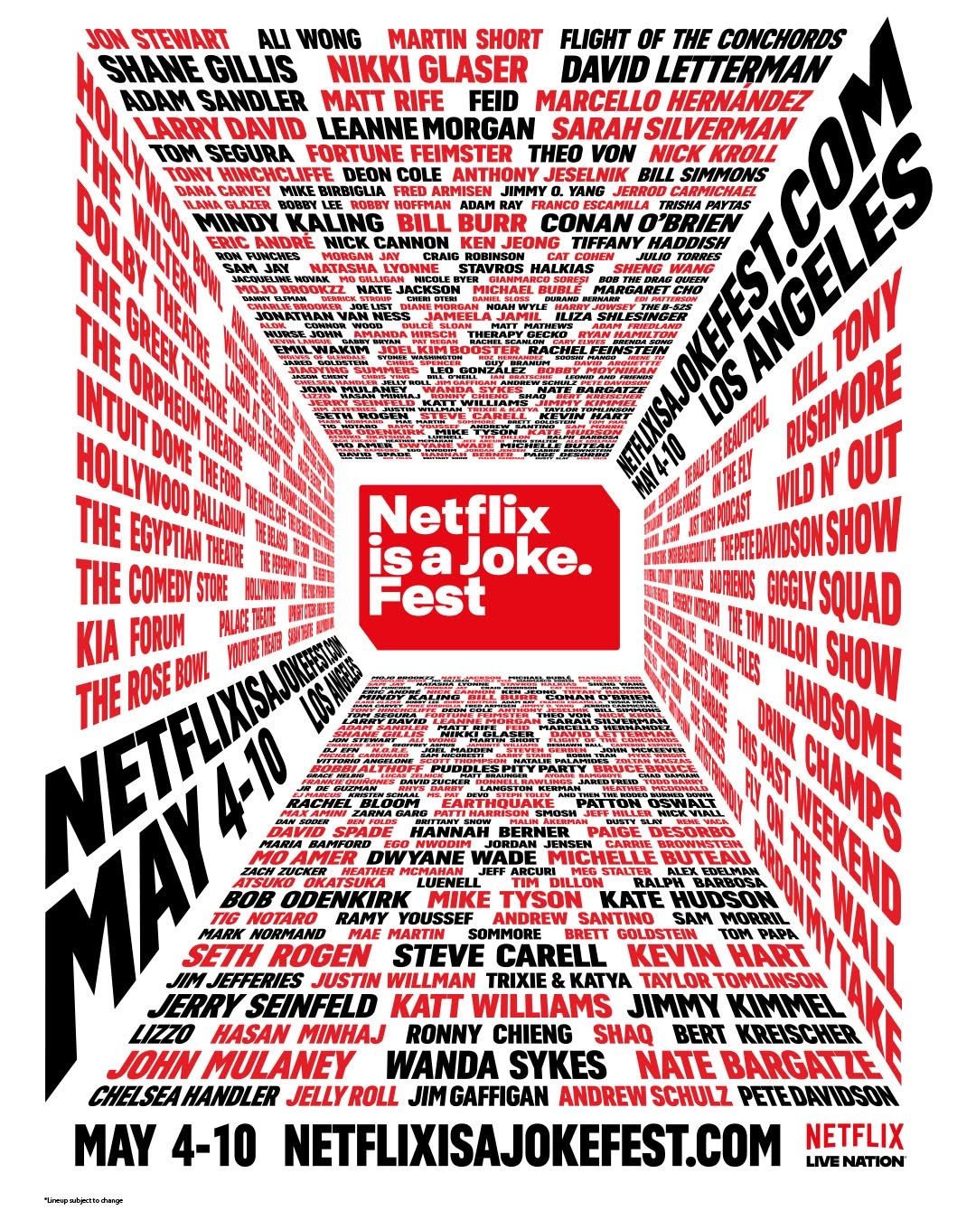 🎉 Welcome to Netflix Is A Joke Fest - The Not Inappropriate Show with Bob Odenkirk at Egyptian Theatre - Los Angeles, where dreams come alive and possibilities are endless! 🏛️ Join us at Egyptian Theatre - Los Angeles in the heart of Hollywood, CA for an event that defies expectations. 📅 On May 9th, 2026 at 01:00 PM, be part of something truly extraordinary as we bring together innovation, entertainment, and pure magic. ✨ Every aspect has been carefully designed to ensure an unforgettable experience for all our guests. Whether you're seeking adventure, inspiration, or simply a break from the ordinary, this event promises to deliver beyond your wildest dreams. 🎊 Prepare for a journey into the extraordinary!
