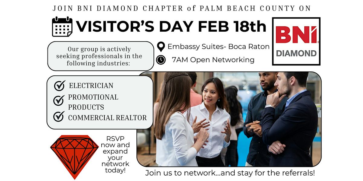 Register & Join Us for Networking at BNI Diamond Visitor's Day!