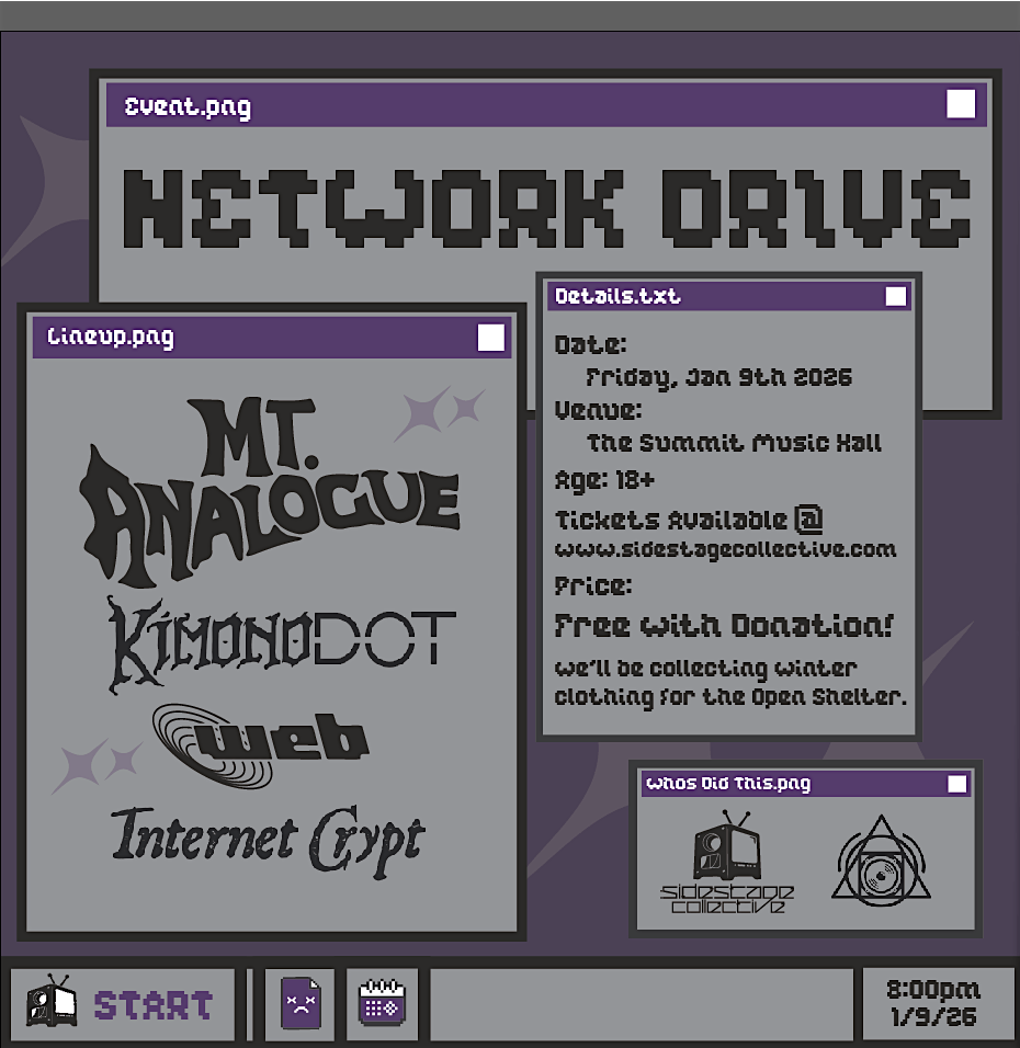 Network Drive is back! This time featuring the sounds of Mt. Analogue, KimonoDot, WEB, and Internet Crypt!