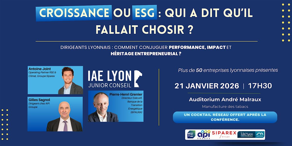Cette conférence ESG à Lyon, organisée à l’Université Lyon 3, propose une approche concrète et stratégique pour comprendre comment concilier croissance économique, impact environnemental et héritage entrepreneurial, sans compromis sur la performance.