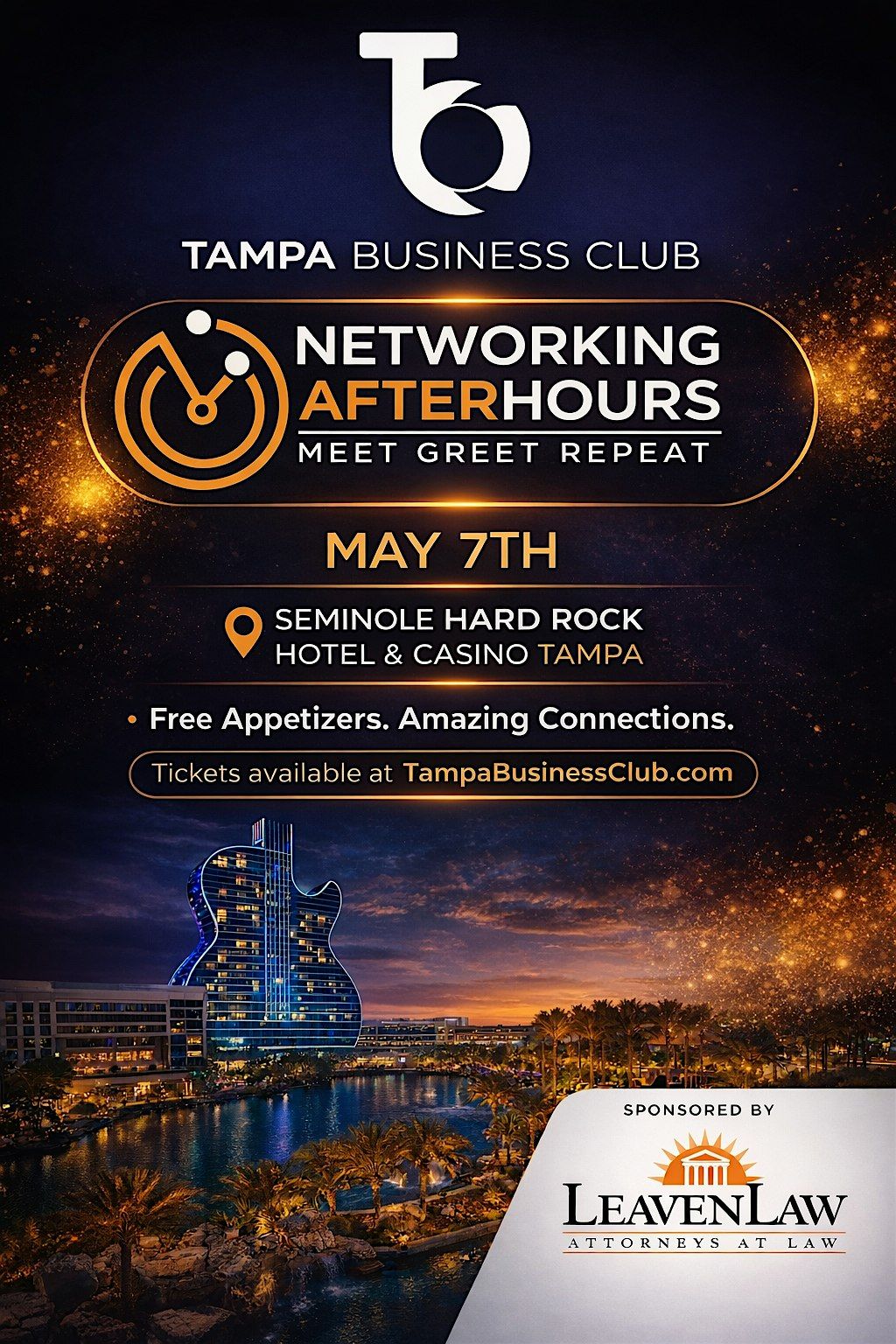 Join us for a fun and casual Networking After-hours event at The Rez Grill inside Seminole Hard Rock Tampa! It's the perfect chance to meet new people, share ideas, and unwind after a busy day. Mark your calendar for May 7, 2026 at 6:00 PM (Eastern Time) and come ready to connect in a relaxed atmosphere. See you there!