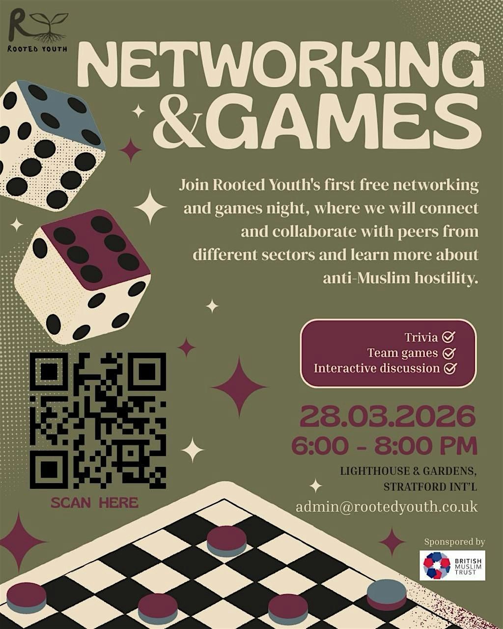 Join Rooted Youth for a FREE networking & games night bringing together young people aged 18–30 from different backgrounds and career sectors.