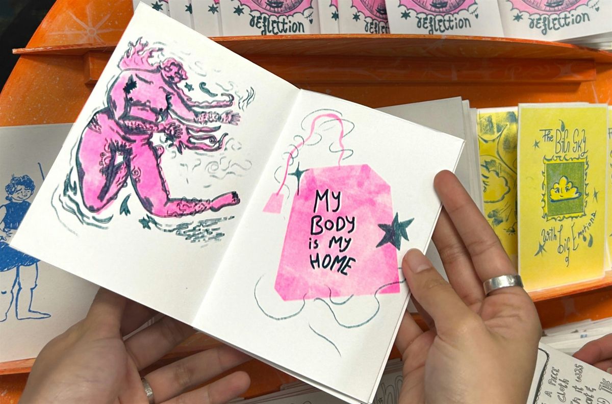 Radhika Chaudhary is an illustrator and workshop facilitator whose practice is rooted in community, play, and neuroinclusive design. They are a graduate of UAL LCC and from their own experience of dyslexia and ADHD they co-founded Neuroinclusive Play Collective, where they creates safe, creative spaces for South Asian neuroqueer-identifying individuals through zines, drawing, and hands-on workshops. Radhika will be joining remotely.