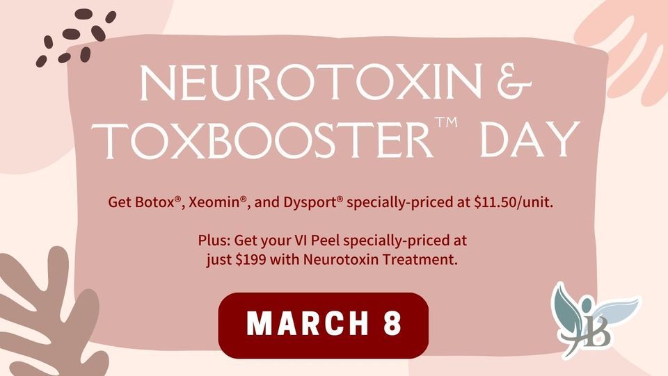 Make your appointment for March 8 and get Botox®, Xeomin®, and Dysport® SPECIALLY-PRICED AT $11.50/UNIT. ** HURRY! Spaces are limited and will book up. Make your reservation early! **