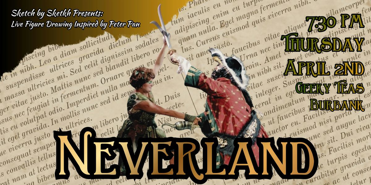 Join us for a whimsical night of figure drawing inspired by the classic story of Peter Pan- featuring two live cosplay models as Peter & Captain Hook! Sketch along to a themed playlist for Lost Boys & Pirates alike!