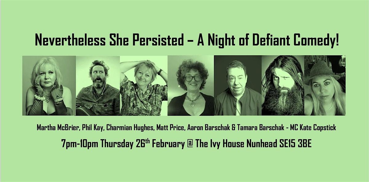 Nevertheless She Persisted - A Night of Defiant Comedy is a charity fundraiser for Resonance FM and Mama Biashara, at the gorgeous Ivy House in Nunhead, hosted by hosts of Resonance radio show Nevertheless She Persisted, Lisa Moyle, Rose Ives and Blanche Cameron. Join us for music and comedy to celebrate our show's first year!