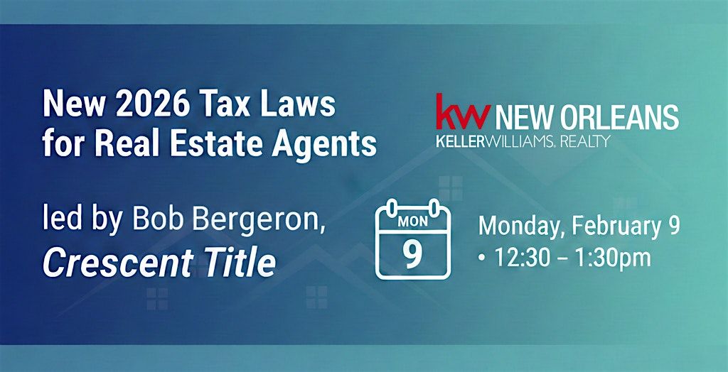 That’s why Bob Bergeron from Crescent Title is joining us for a one-hour training to walk real estate agents through the new 2026 tax laws, what they mean in real-world terms, and the smart moves to consider before the year begins. He’ll cover what’s changing, what to watch for, and practical takeaways you can apply right away.