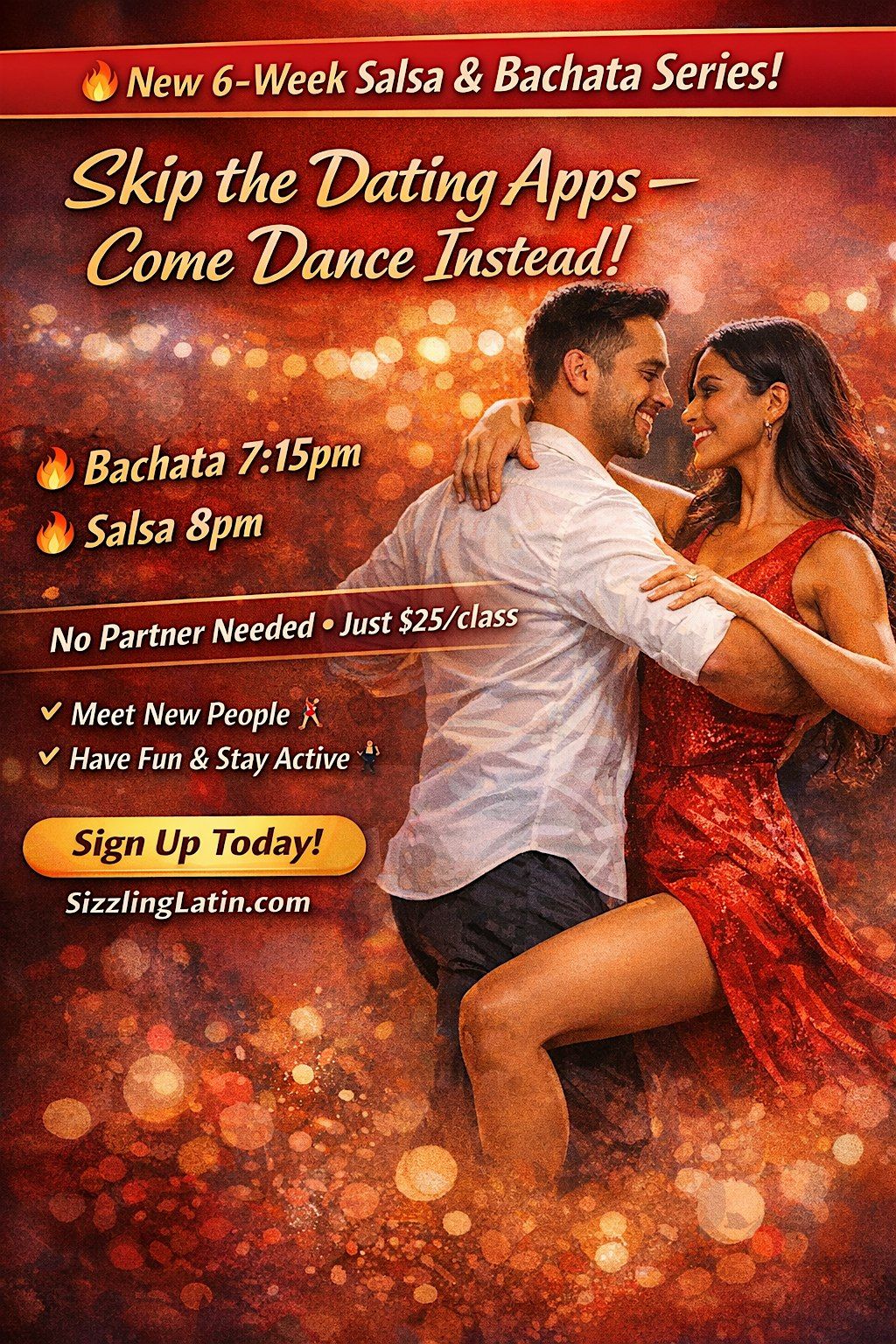 Get ready to spice up your Wednesdays with six weeks of fun salsa and bachata moves! You can drop in too! SizzlingLatin Studio in Lafayette.