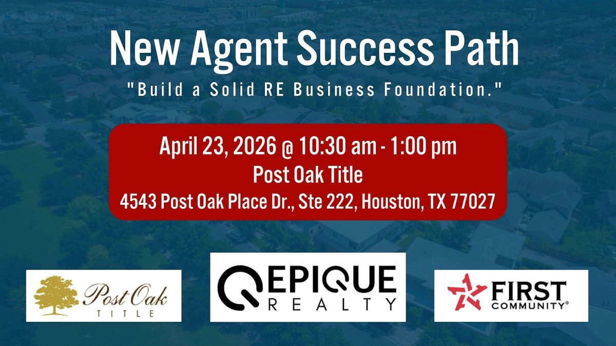 Welcome to the New Agent Path to SUCCESS event! Join us at Post Oak Title for a super valuable in-person event. This event is designed for New or would be Realtors that would like to get knowledge and build a solid foundation to start their Real Estate business.