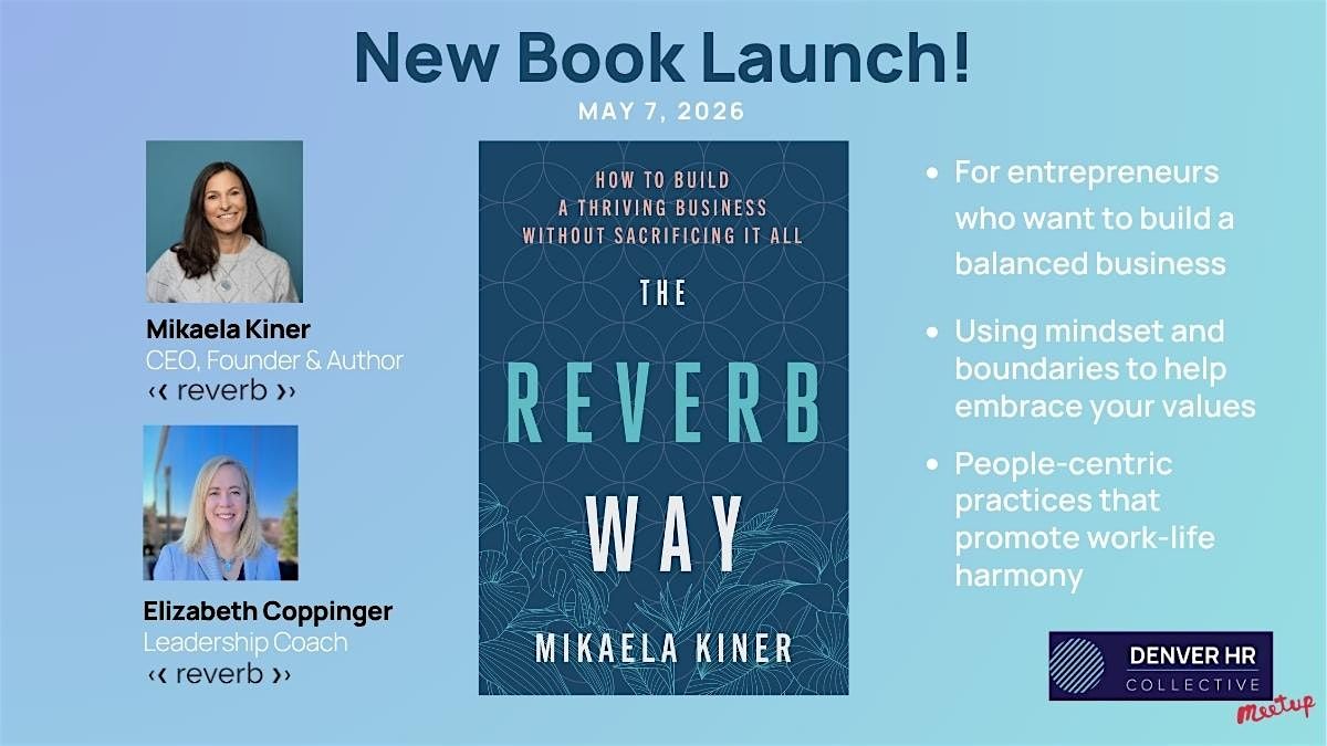 Please join Liz Coppinger and Mikaela Kiner as we celebrate Mikaela's new book "The Reverb Way: How to Grow a Thriving Business Without Sacrificing It All." This book is about how entrepreneurs and business owners can build and lead a people-centric business where everyone has the time and energy to enjoy life outside of work. We'll discuss the mindset, boundaries, and people practices that make it possible. Whether you're a business owner, HR professional, or aspiring entrepreneur, we hope you'll join us.