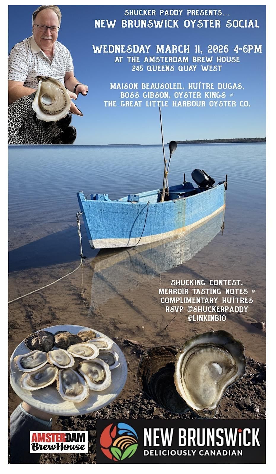Complimentary New Brunswick Oysters tasting. ShuckerPaddy & the Team at Amstedam BrewHouse will be opening 2000 Oysters for you to Taste and enjoy! Cash Bar.