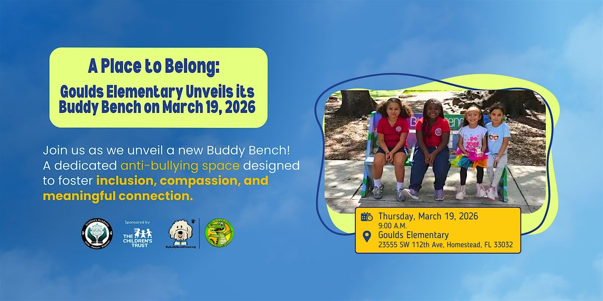 Homestead, FL – Goulds Elementary School's Principal Passmore-Mack proudly announces the installation of its new Buddy Bench, a symbol of friendship and a dedicated anti-bullying space where students can find connection and belonging. The bench will be officially unveiled on March 19, 2026 at 9:00 a.m., uniting students, staff, families, and community leaders & partners in celebration.