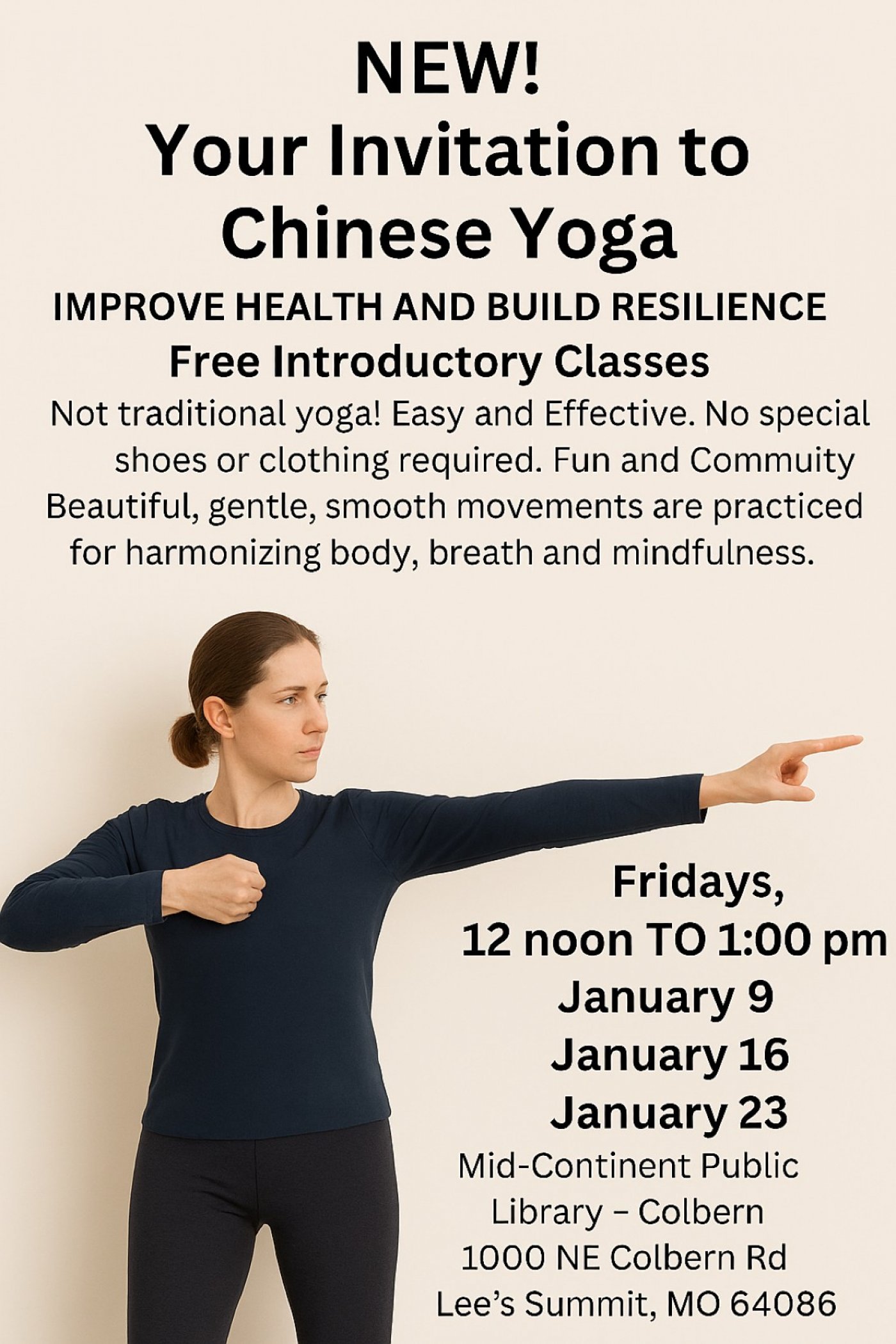 #ChineseYoga #WellnessEvent #MeditativeMovement #LeeSummitEvents #BalanceAndHarmony #MidContinentPublicLibrary