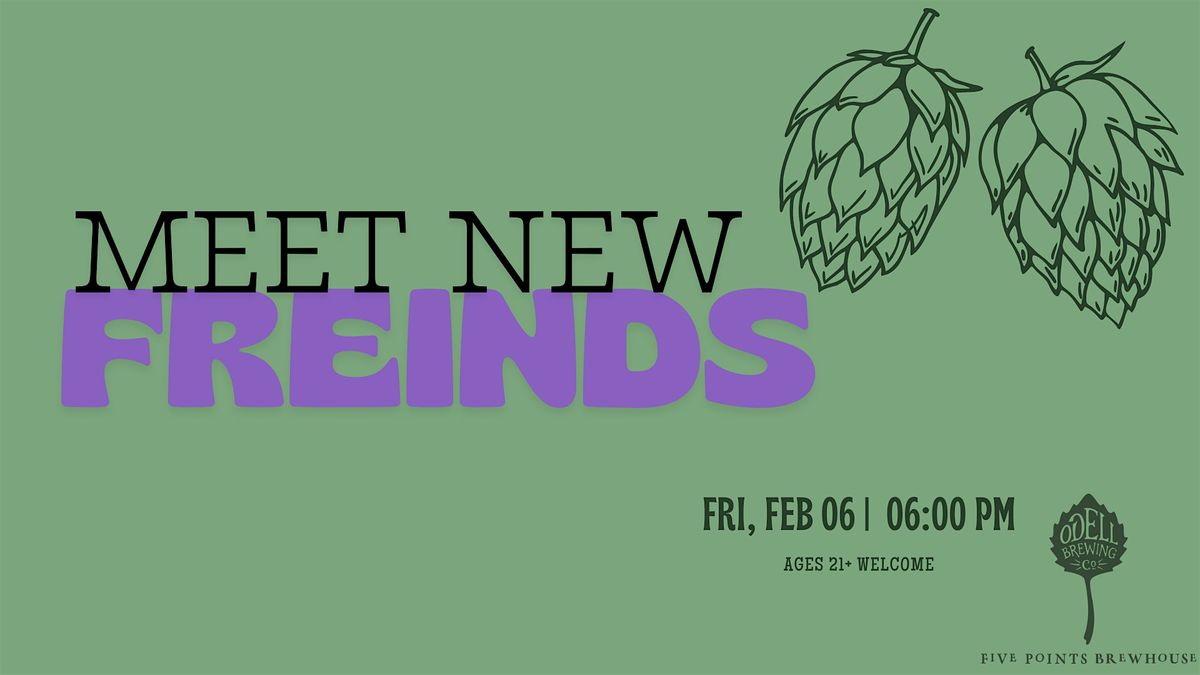 NEW CITY, NEW FRIENDS! 🎉 Join us at Odell Brewing Five Points Brewhouse on February 6, 2026 at 6:00 PM (Mountain Time) for an evening of fun and connection. Let's make memories and meet new pals in this awesome city. This event is open to anyone 21+ and is meant for you to mingle and meet your new besties!