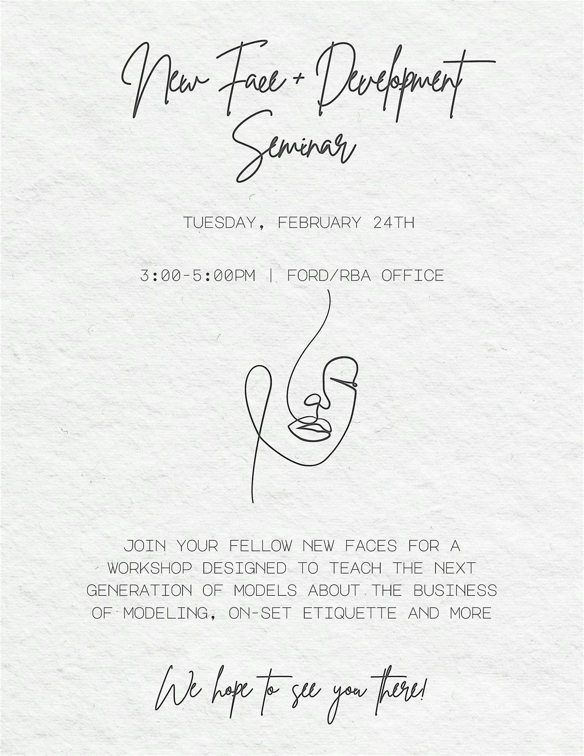 No need to bring anything besides your best self! In this seminar, we will walk through the 101s' of this business, do's & don'ts, and educational tips to propel you into your modeling career. Please arrive in a digitals/casting outfit as we will have workshops throughout the seminar.