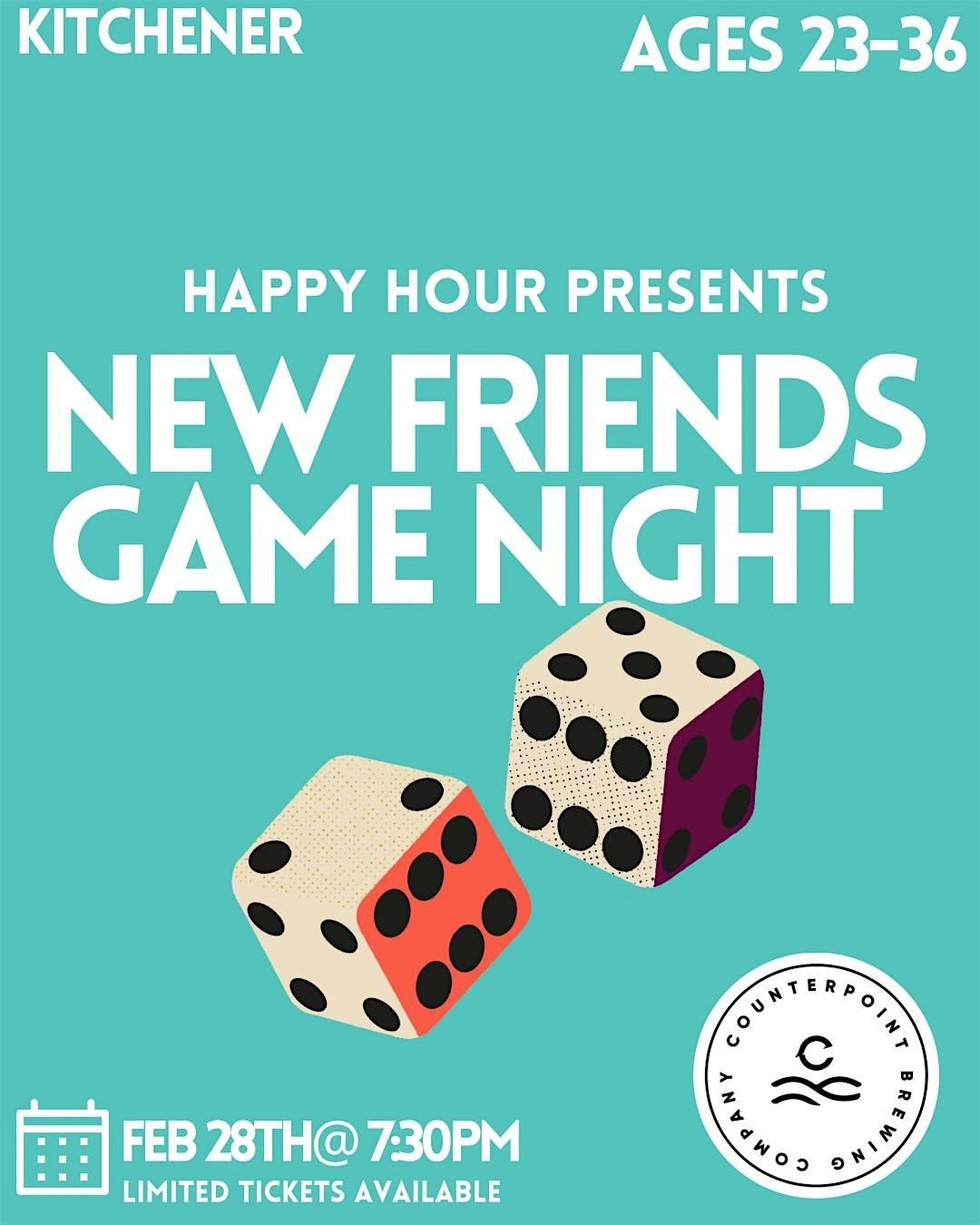 Happy Hour presents by popular demand New Friends Game Night @ Counterpoint Brewing