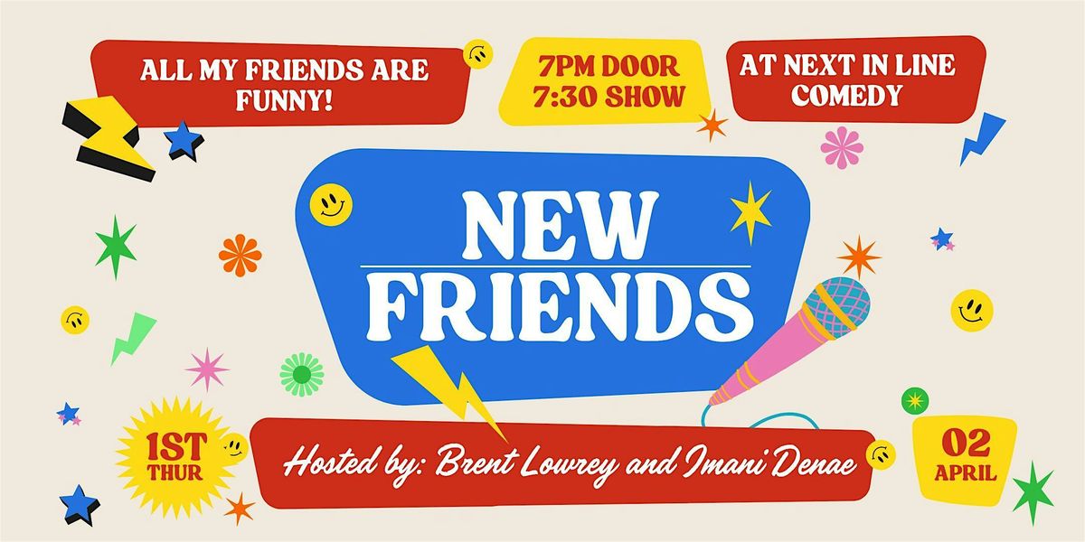 Come see new friends of Brent and Imani, first Thursdays at Next In Line Comedy. Showcase followed by a lottery open mic.