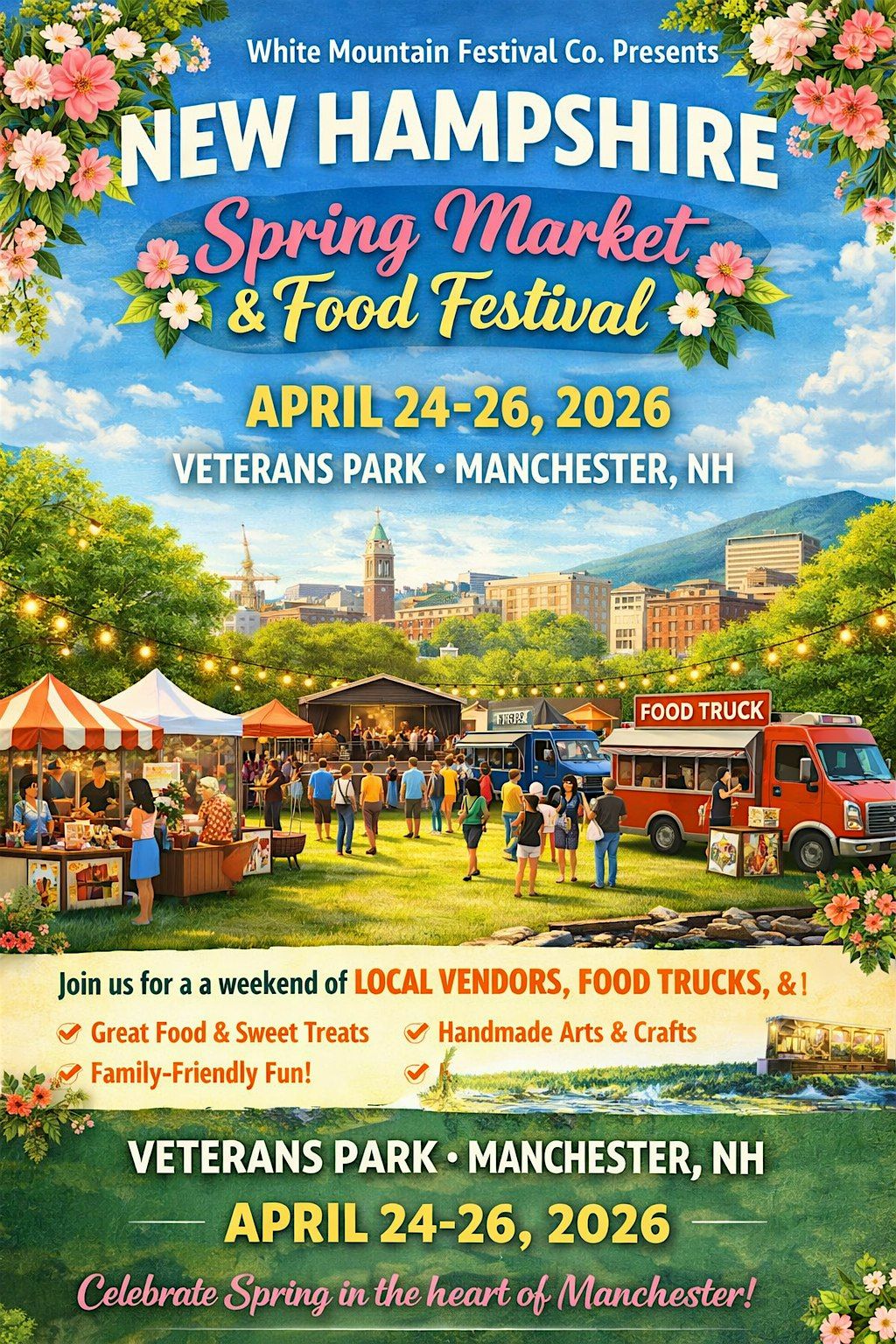 Join us for a vibrant weekend at the New Hampshire Spring Market & Food Festival, a three-day outdoor event featuring local vendors, handmade crafts, food trucks, and live entertainment. Visitors can explore a lively marketplace filled with unique products, art, clothing, and goods from talented local businesses.