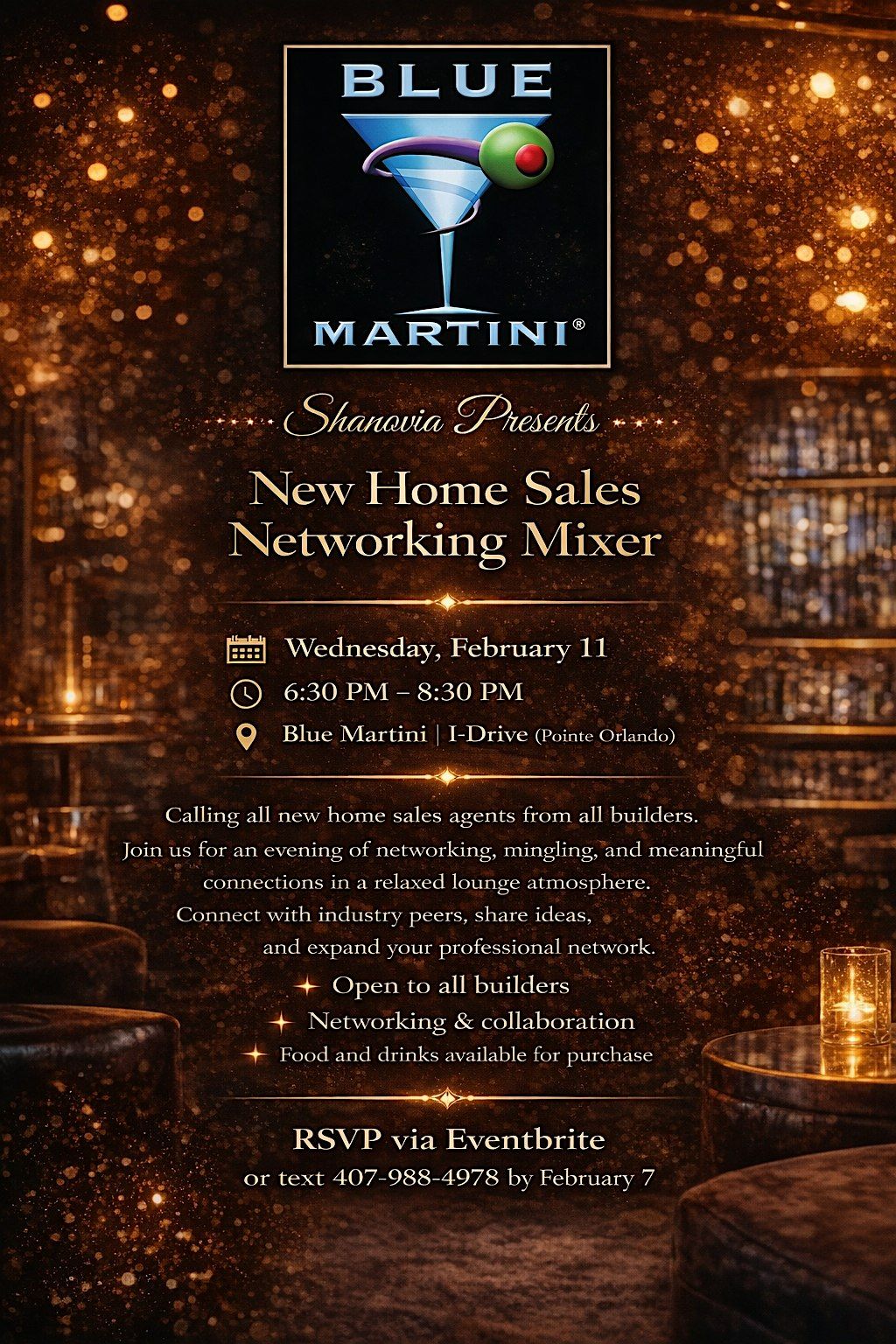 Calling all builders! New Home Sales Agents networking mixer at Blue Martini I-Drive. Connect, collaborate, and build industry relationship