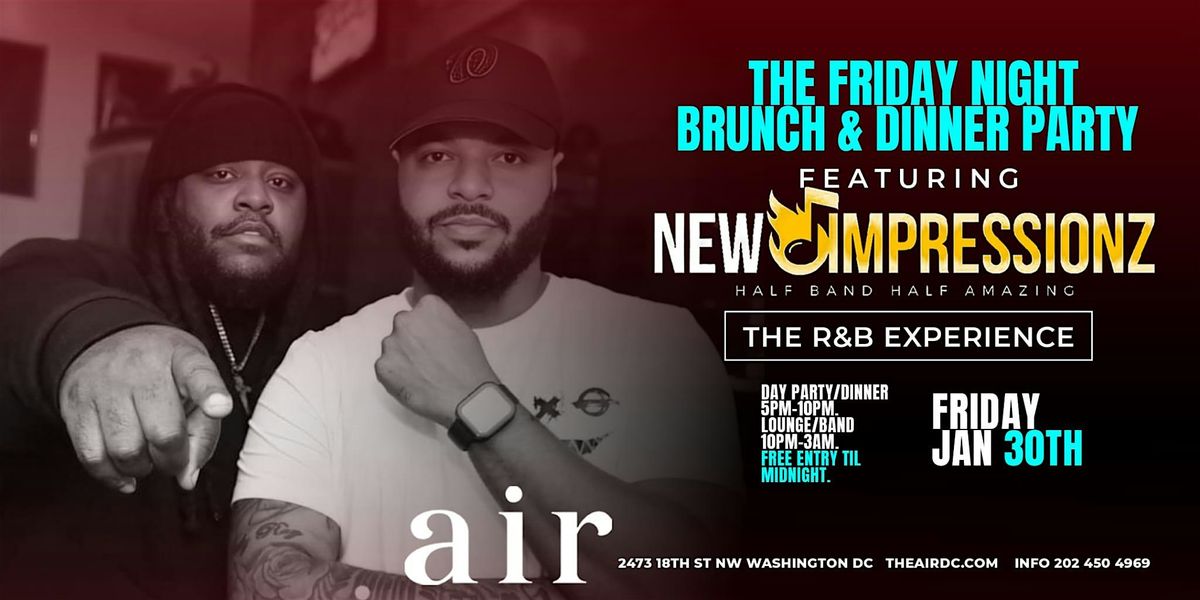 Welcome to NEW IMPRESSIONZ PERFORMING LIVE AT AIR DC! Get ready for a night to remember at Air Restaurant & Lounge on January 30, 2026 at 9:00 PM (Eastern Time). Join us for an unforgettable performance by New Impressionz, guaranteed to get you on your feet and dancing all night long. Don't miss out on this incredible opportunity to see them live! Mark your calendars and come party with us!