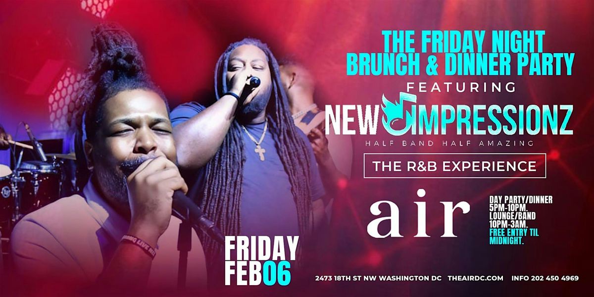 Welcome to NEW IMPRESSIONZ PERFORMING LIVE AT AIR DC! Get ready for a night to remember at Air Restaurant & Lounge on January 30, 2026 at 9:00 PM (Eastern Time). Join us for an unforgettable performance by New Impressionz, guaranteed to get you on your feet and dancing all night long. Don't miss out on this incredible opportunity to see them live! Mark your calendars and come party with us!