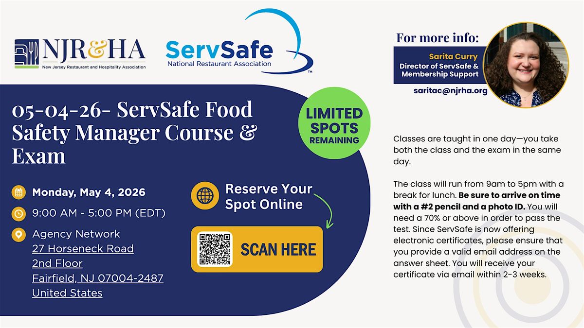 Register here: New Jersey Restaurant & Hospitality Association: ServSafe Food Safety General Manager Course/Exam