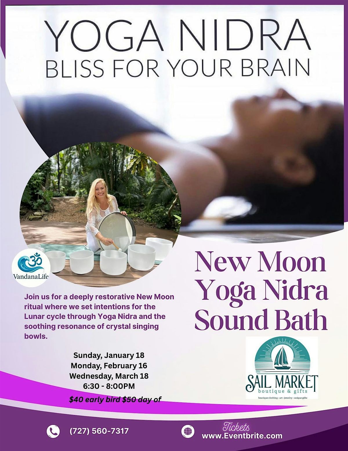 Join us for a deeply relaxing candlelit New Moon ritual where we set intentions during this auspicious time. Well start with essential oils and get cozy for our Yoga Nidra session paired with soothing Sound Healing to honor the new moon. This in-person gathering is the perfect chance to reset, recharge, and set your intentions in a calm and supportive space. Whether you're new to these practices or a seasoned pro, come vibe with us and tap into the moon's powerful energy. Bring your mat, comfy clothes, a light eye covering, 2 blankets, a pillow and an open mind!