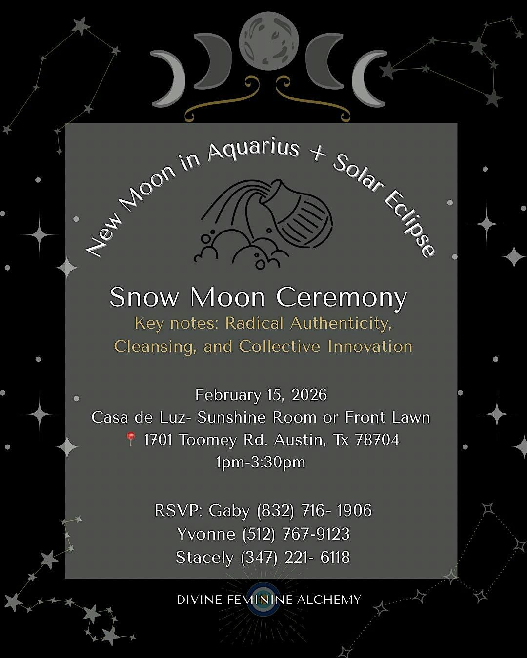 Under the New Moon in Aquarius, amplified by solar eclipse energy we gather in a welcoming, co-ed space to reset, connect, and plant seeds for what’s next.