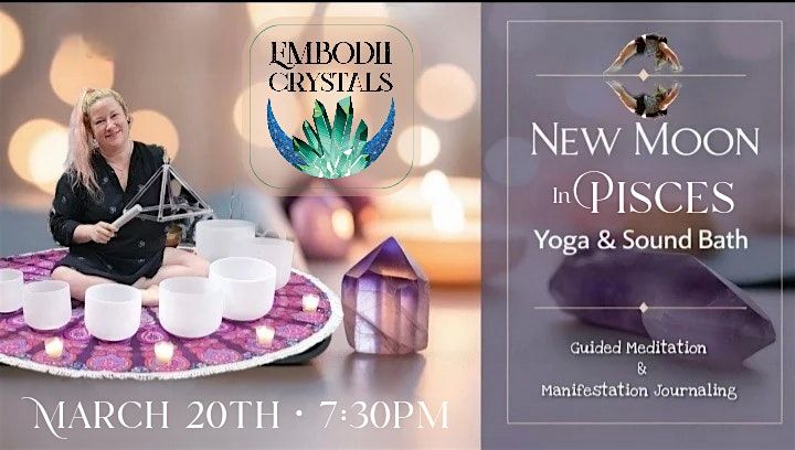 Join us at Embodii Crystals for a deeply restorative and spiritually aligned evening as we gather under the New Moon in Pisces for a Yoga & Sound Bath experience designed to soften the heart, quiet the mind, and open the channels of intuition.