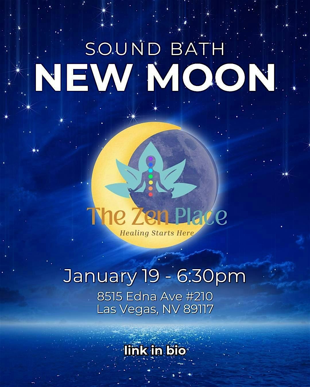 Join us in person for a deeply relaxing New Moon Sound Bath! Let soothing sounds guide you into a peaceful state, perfect for resetting and setting fresh intentions under the new moon's glow. Bring your comfy clothes, settle in, and drift away with calming vibrations. It’s the perfect way to unwind and connect with the energy of new beginnings and to start the year off right. Don’t miss out on this rejuvenating experience!