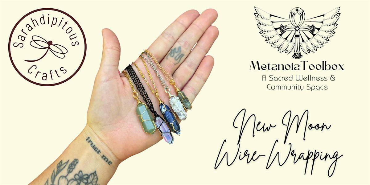 Join Sarah, owner of @SarahdipitousCrafts, for a New Moon Wire Wrapping Session. Set intentions, choose your crystal and learn how to turn it into a gorgeous necklace that you take home with you. Soak in healing & soothing vibrations, courtesy of Therese @metanoiatoolbox, to help you reset your energy for the month ahead!