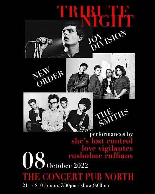 Tribute Night: Joy Division, New Order, The Smiths! Performances by She's Lost Control, Love Vigalantes...Doors at 7:30PM!