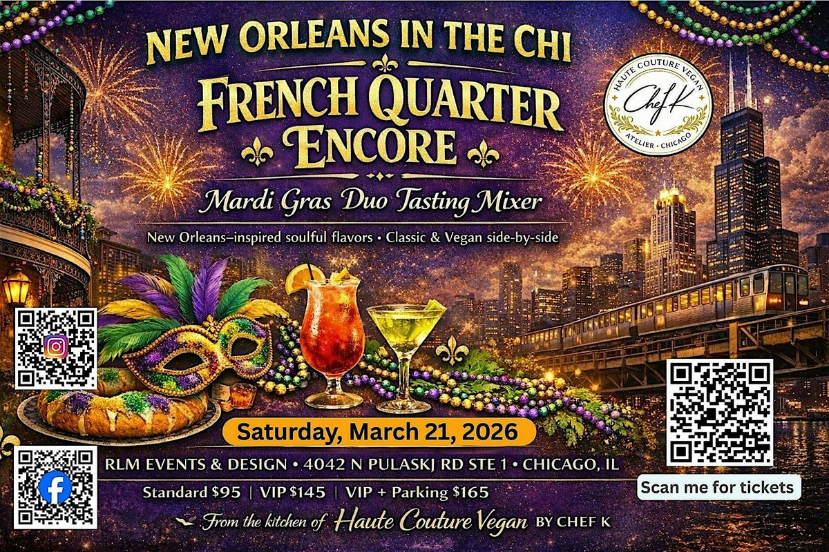 French Quarter Encore is a Mardi Gras-themed Duo Tasting Mixer celebrating New Orleans–inspired soulful flavors — served Classic + Vegan side-by-side so everyone can enjoy the same tradition, two ways.