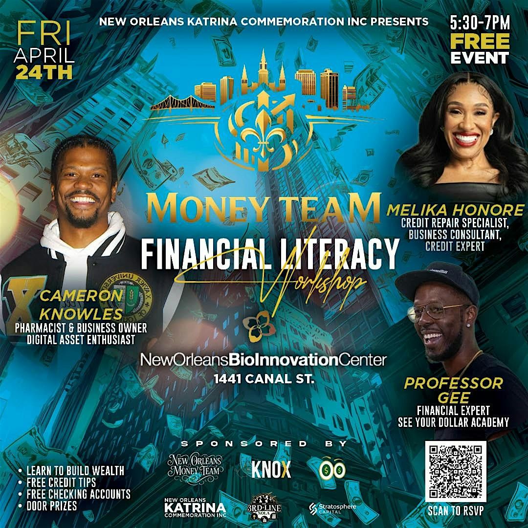 Learn to build wealth with our 3 speakers. Camron Knowles, Melika Honore and Professor Gee