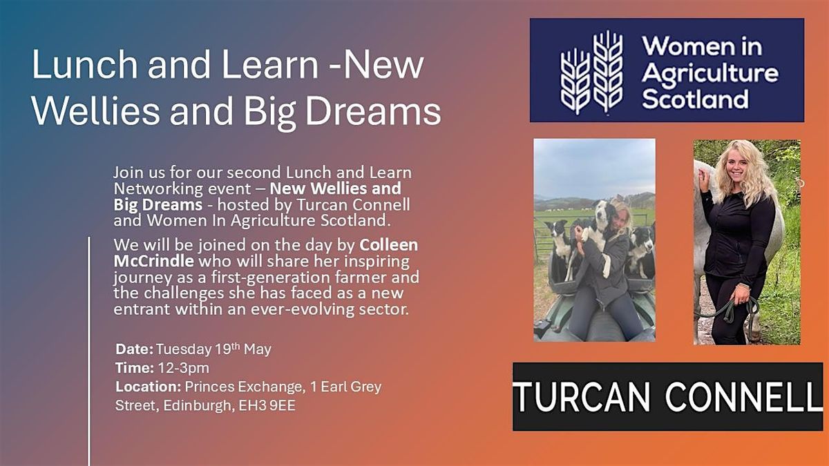 Join us for our second Lunch and Learn Networking event – New Wellies and Big Dreams - hosted by Turcan Connell and Women In Agriculture Scotland.