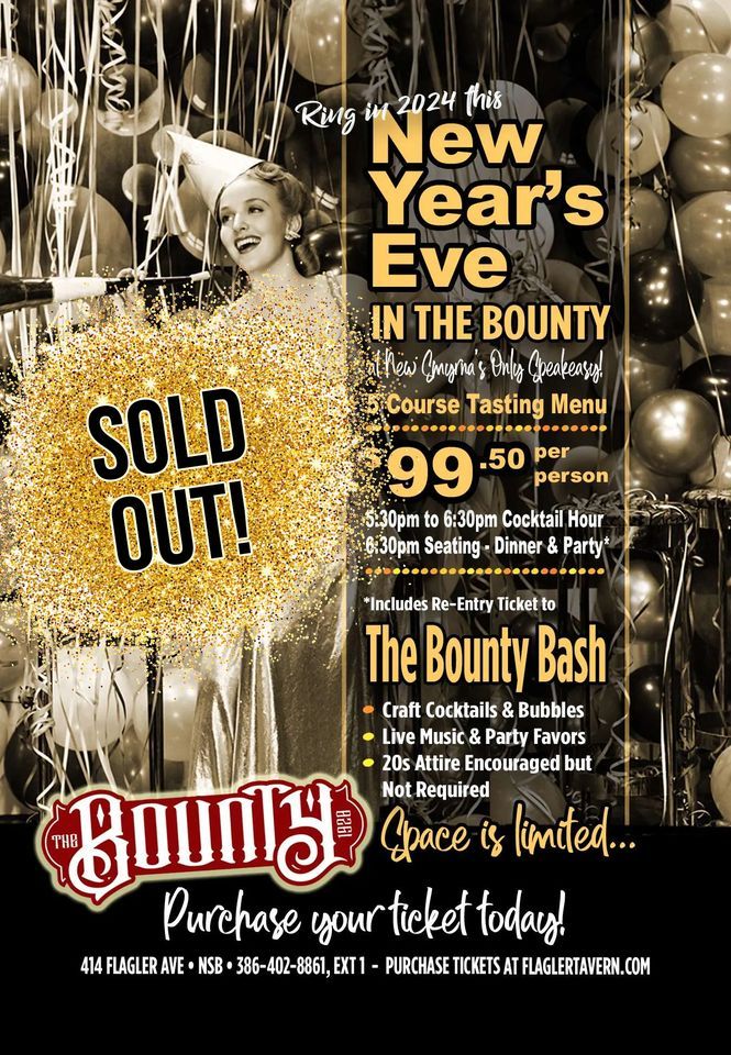 Update Thursday, Dec 21st: Dinner is SOLD OUT!New Year’s Eve Dinner in The Bounty 2023