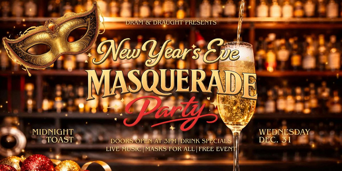 Ring in the New Year at our Masquerade Party free event, drink specials, masks for all, midnight countdown, & live music !